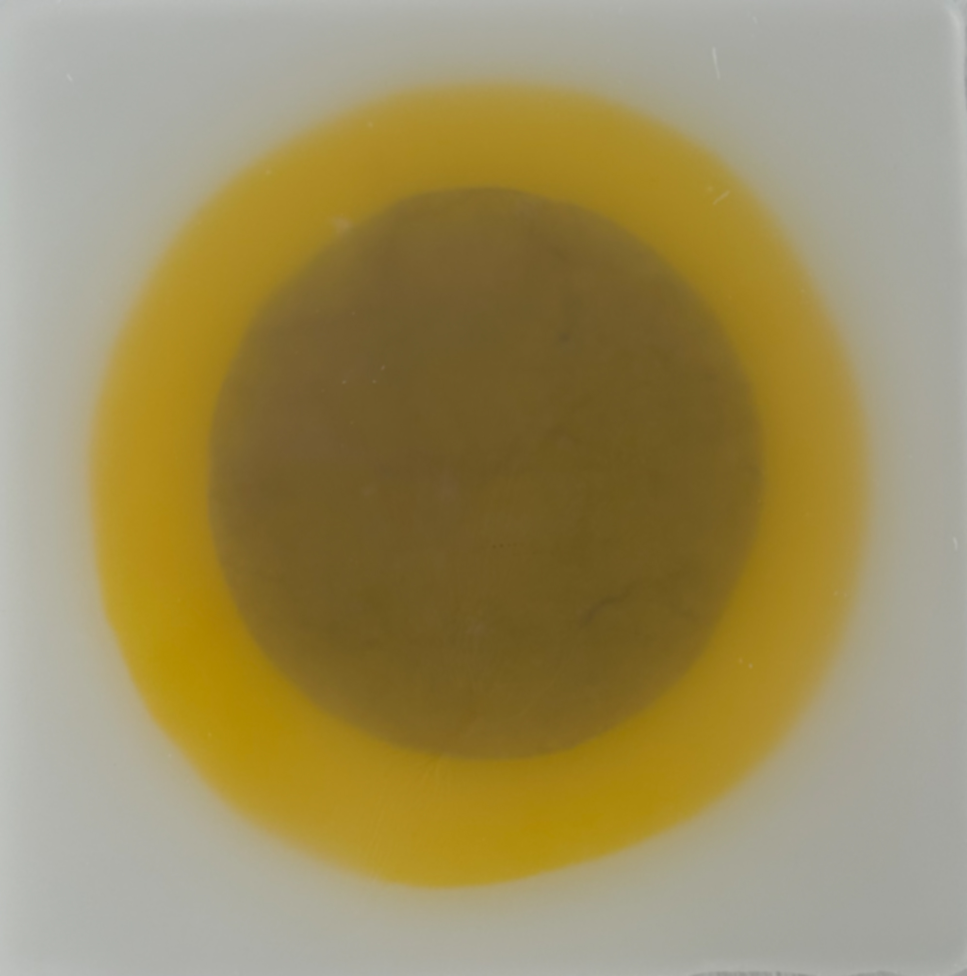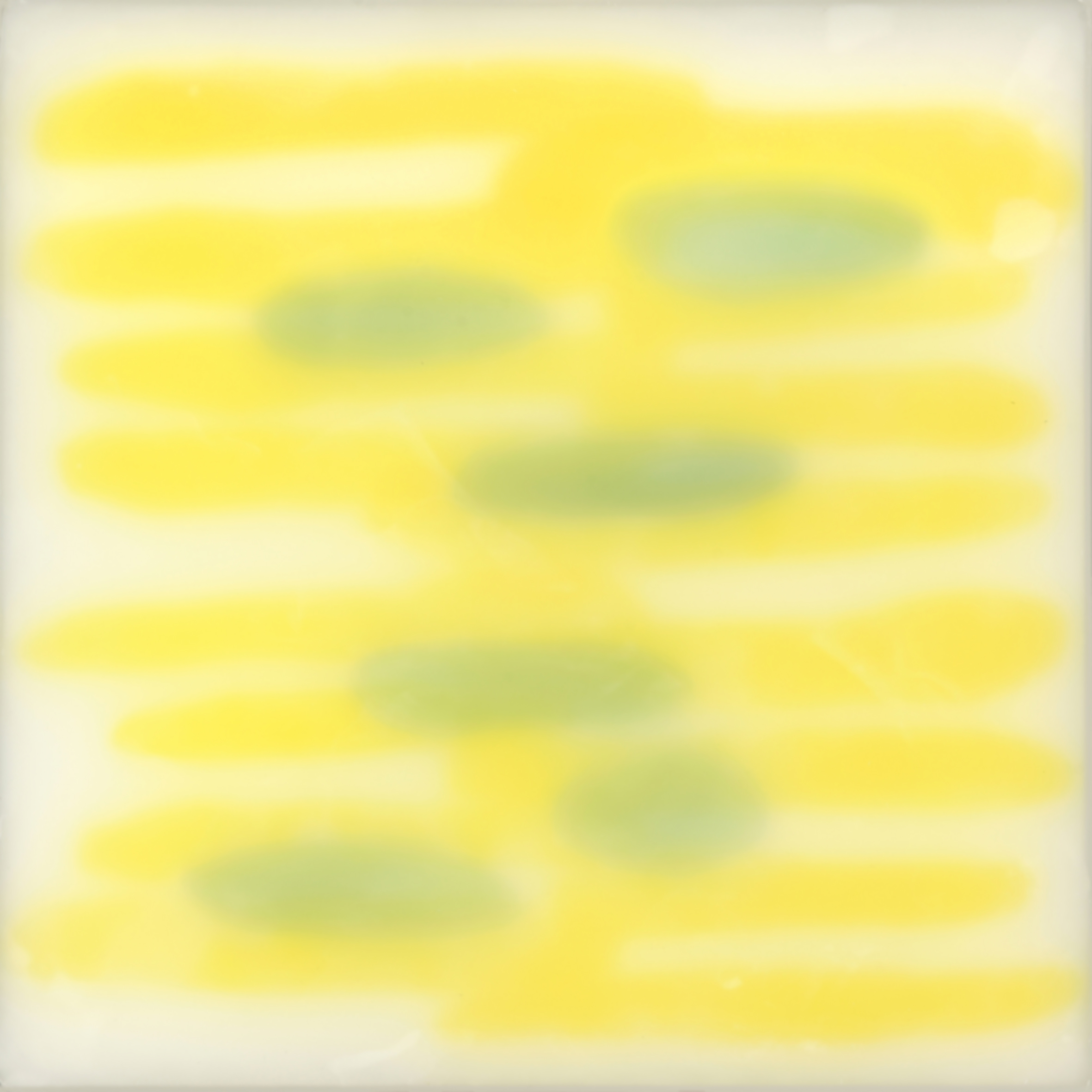 "Die haptische Eigenschaft des Wachs gibt dem Objekt eine sinnliche Körperlichkeit." (Edda Jachens) Mit Acryl und Tusche bemalte- oder collagierte Holzborde werden mit heißem Wachs bestrichen oder übergossen.